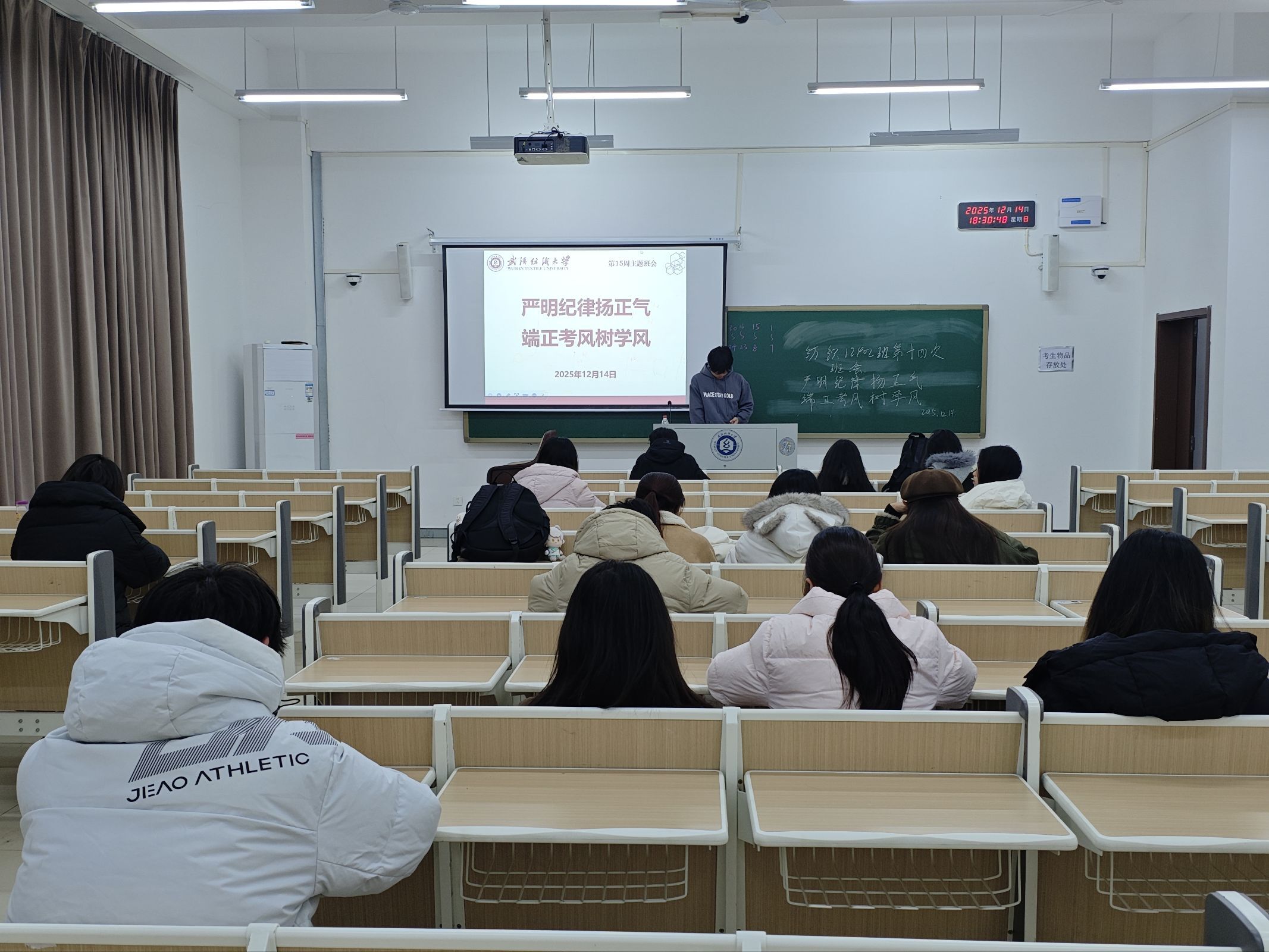 为进一步强化学生纪律意识、诚信素养和安全防范能力,营造风清气正的校园环境,12月14日,纺织学院组织各班级开展“严明纪律扬正气,端正考风树学风”主题班会。各班辅导员、班主任主持班会,全体本科生共同参与。