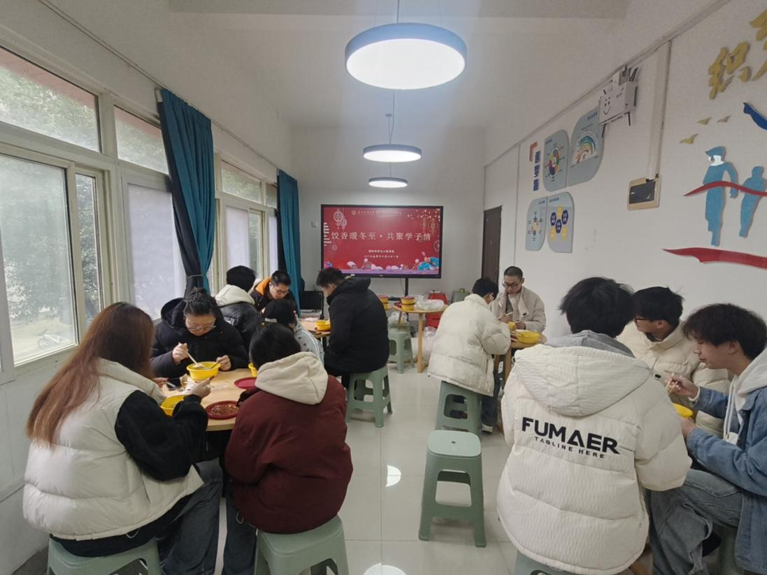 辅导员向婷、邢万传老师走入同学们中间,与大家共度佳节。她们亲切询问同学们期末备考与生活情况,叮嘱大家注意冬季健康,并送上温暖的节日祝福。老师们表示,冬至是我国重要的传统节气,学院希望通过组织此类暖心活动,让同学们即便身在校园,也能感受到如家般的温暖与陪伴,在放松身心的同时,加深彼此间的连接,营造团结友爱的学院文化。
