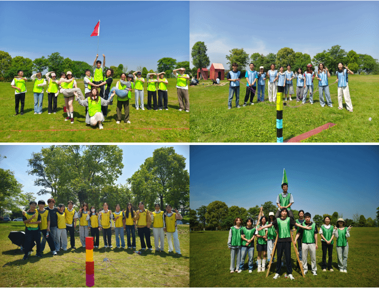破冰环节中,同学们通过趣味互动迅速建立信任,随机组建“稳赢队”“经纬先锋”等特色队伍,展现出稳健班学子昂扬的创新活力。随后,《合力建塔》和《不倒森林》两项团队协作项目将活动推向高潮。“合力建塔”环节,队员们默契配合、无声协作,通过细绳精准操控积木,在反复尝试中共同筑起象征团结与智慧的高塔;“不倒森林”环节,同学们手扶PVC管围成圆阵,步伐一致、心神凝聚,在“移步换位”中体验信任与责任的分量。整个过程既有紧张竞技,也有互助共进的温馨瞬间,充分体现了学生队伍团结协作、奋勇争先的优良品质。