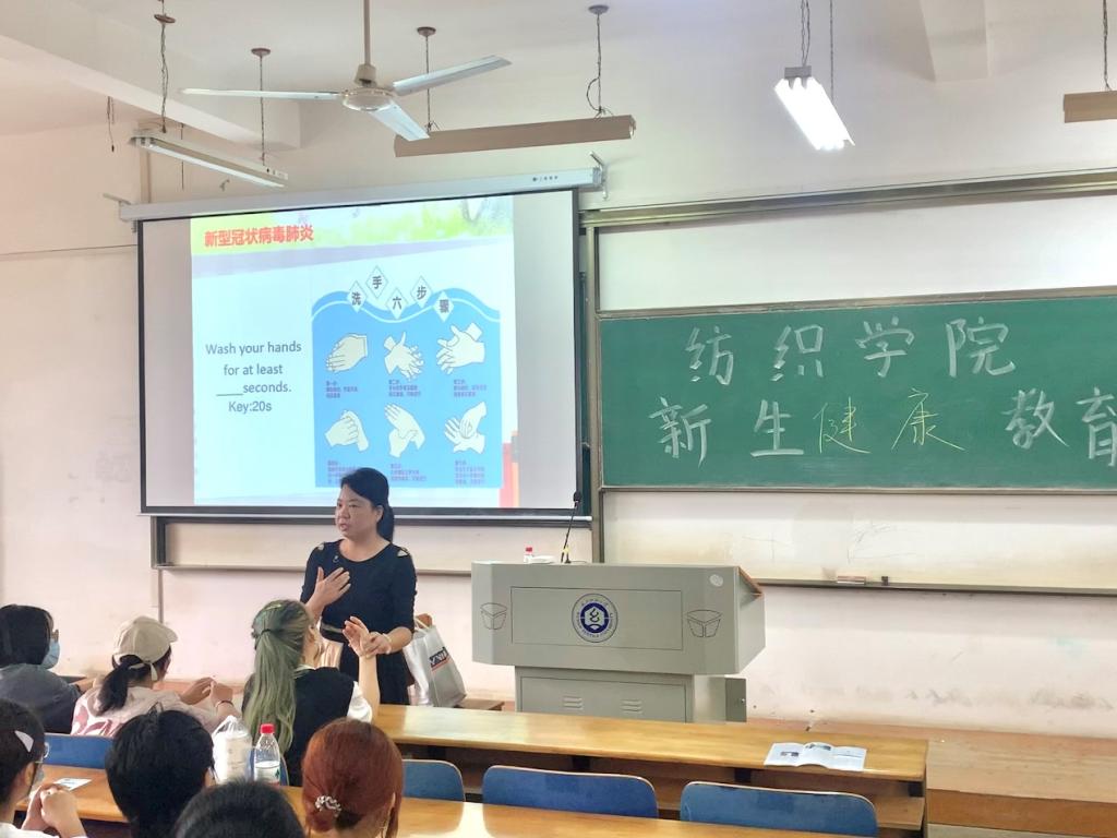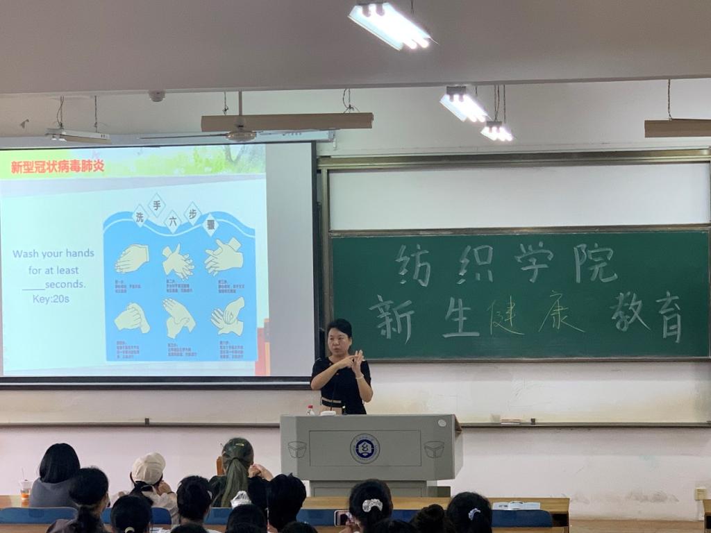 大学生参加基本医疗保险实施细则》,普及了医保保险年度、费用报销地点、以及住院医疗和普通门诊、校医院急诊医疗的受理流程等内容,使新生能够熟悉校医院的正常流程和体系,为全体新生筑牢了第一时间救助的防护网。同时,结合当下疫情防控趋势和新冠肺炎疫情特点,校医院段老师主张同学们充分学习掌握戴口罩、勤洗手、多通风、少聚集、养程良好生活习惯、合理膳食,多吃水果、蔬菜,不过度疲劳,加强体育锻炼,并及时接种疫苗等基本预防知识,提高自身防护意识,以此减少与病毒的“亲密接触”。