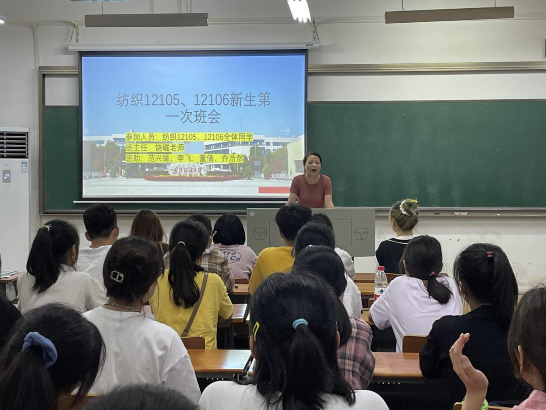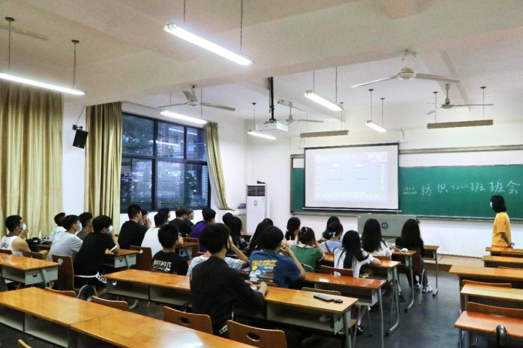 各个班级于9月19日晚上六点在阳光校区三栋教学楼开展了第一次线下班会,本次活动由各班班主任和各班副班主任主持班会,全体纺织学院新生参与班会。