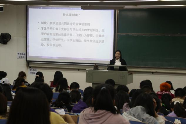 会议伊始,张老师通过提出“大学生活包含了哪些内容?”和“当毕业时,你想从大学得到什么?”两个问题,作为团课的开始,引发同学们的思考。随后张老师介绍了制度的含义和实施的意义,并提出大学中最重要的不仅仅是学好专业知识,还要注重自身行为规范,不论是普通学生还是学生会干部都要严格遵守学生手则,规避游戏、上课两点一线的生活方式,在此基础上充实自己的大学生活,实现综合素质高、身心健康、全面发展。最后,张老师提出同住一间宿舍的学生要团结友爱,以礼相待,整理好宿舍内务,发展健康的宿舍文化,希望同学们都能在未来四年的学习生活中脚踏实地,积极进取,自觉承担起建设社会主义的责任,争做守规则、讲礼仪的新时代青年,在奋斗中释放青春激情。