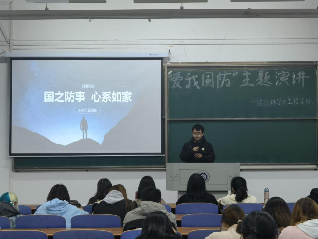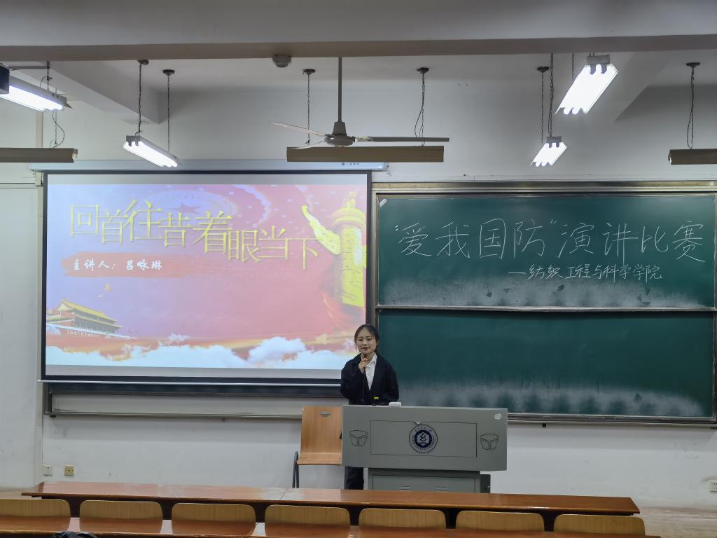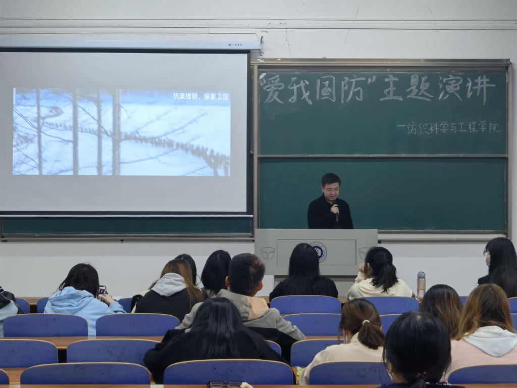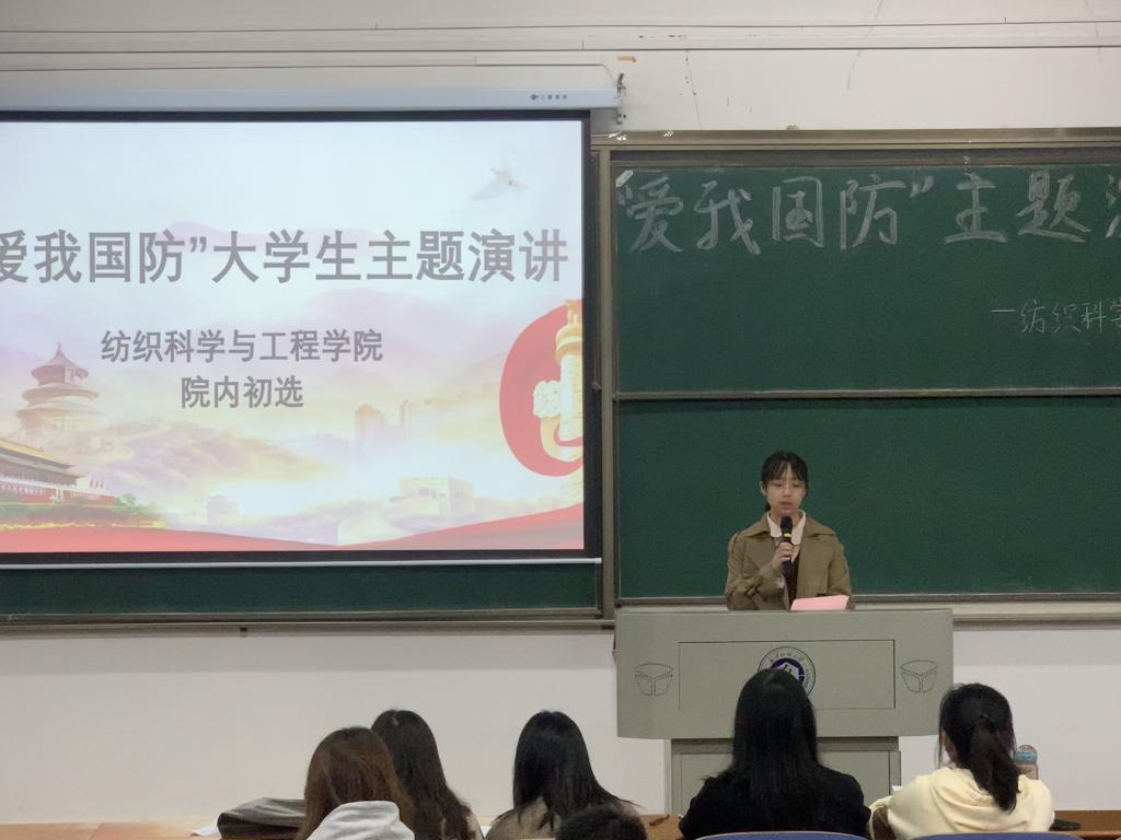 于3栋教学楼T202教室举办“爱我国防”主题演讲比赛。此次比赛由纺织学院全体辅导员和学生会主席团成员担任评委。