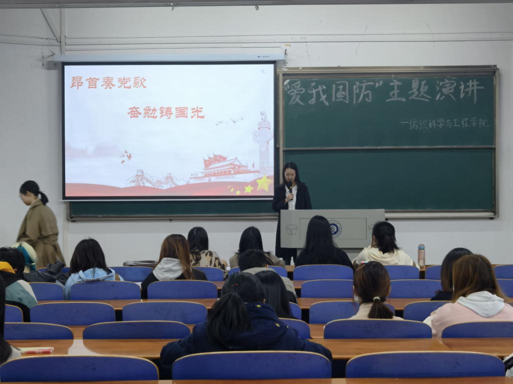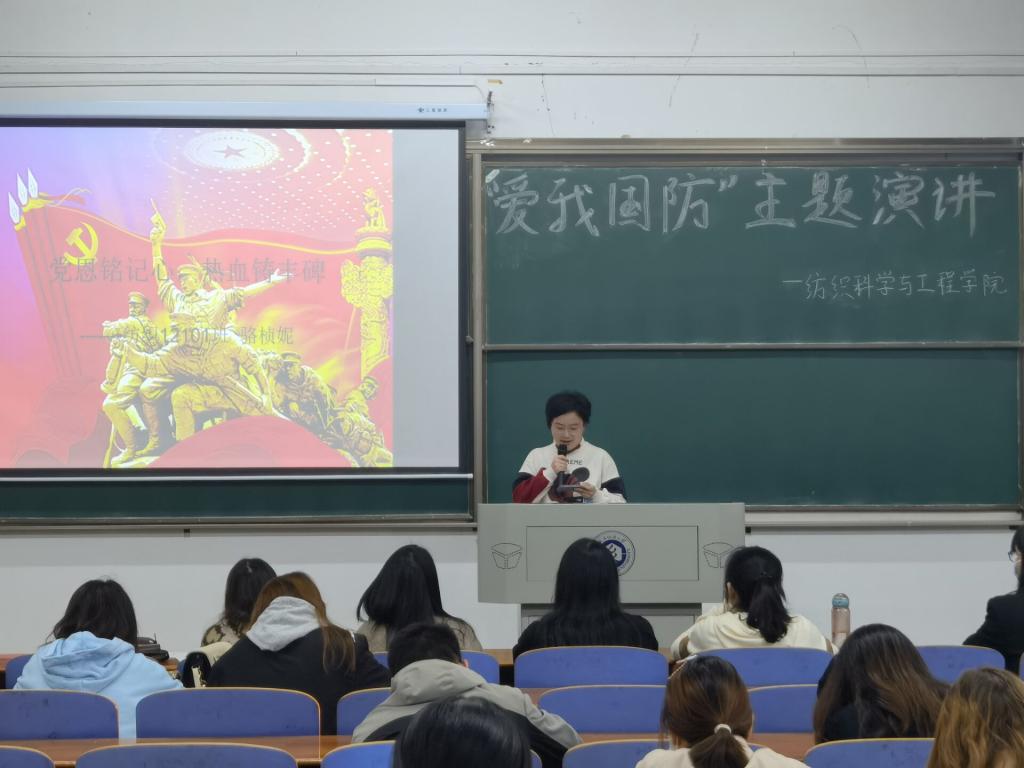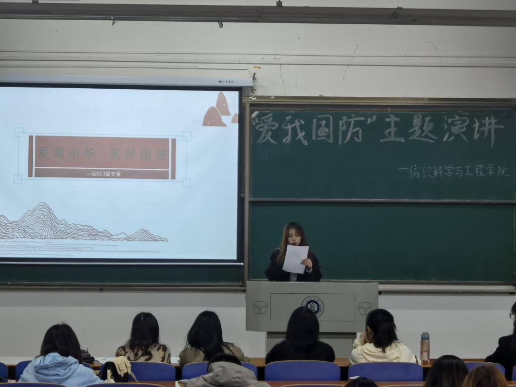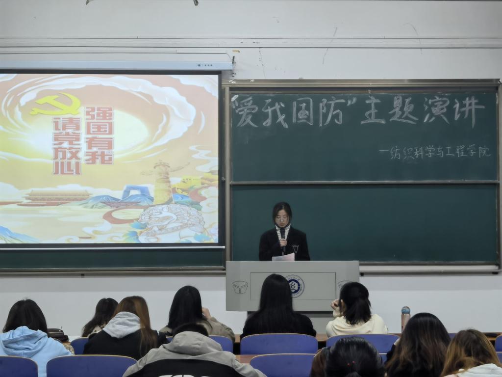 于3栋教学楼T202教室举办“爱我国防”主题演讲比赛。此次比赛由纺织学院全体辅导员和学生会主席团成员担任评委。