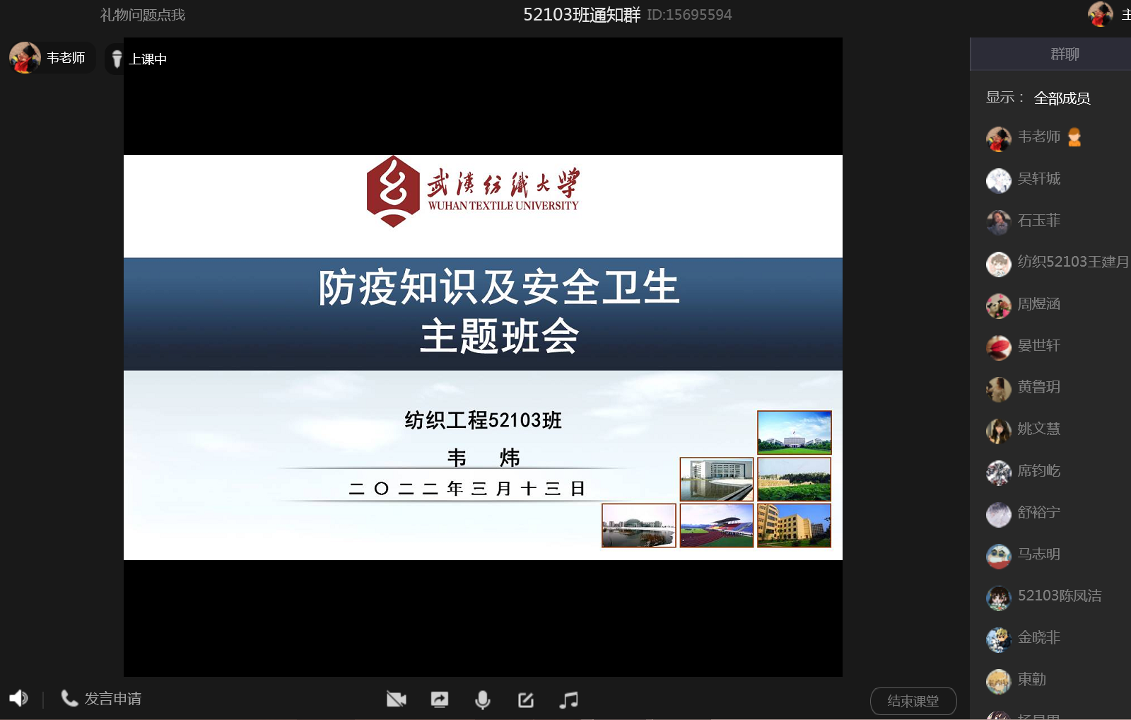 个年级学生于线上开展防疫知识及安全卫生主题大会。各年级辅导员、班主任老师参加。