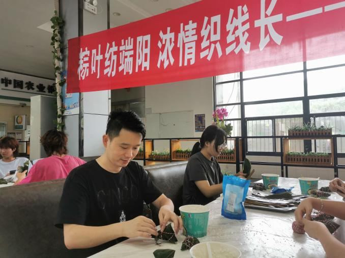 (院团委张竣青老师和同学们一起动手包粽子)