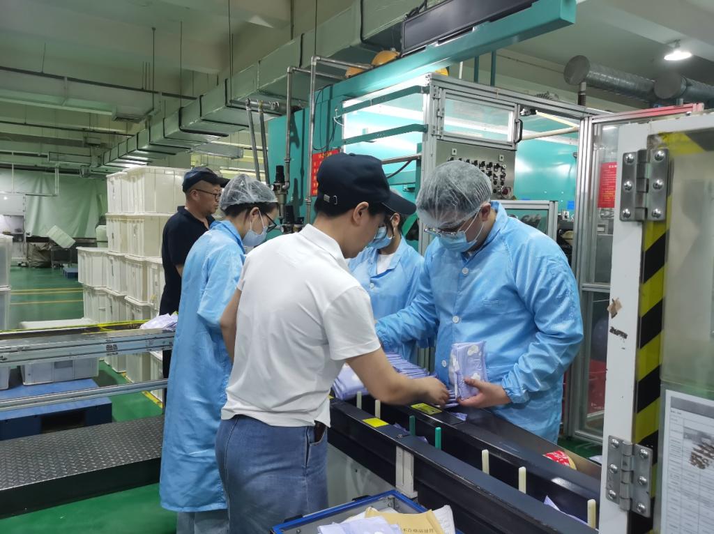 纺编青春实践团在8月4日走访丝宝集团生产车间一线时所看到的一幕。