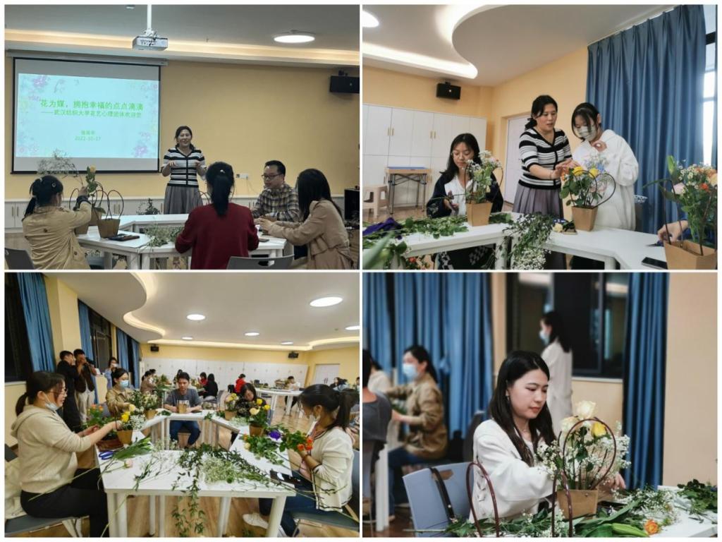 为帮助师生放松心情,释放压力,让老师和同学们以花为媒拥抱幸福。10月17日,由校学生工作部(处)、大学生心理健康教育中心主办,纺织学院承办的世界精神卫生日系列活动之“园艺养心”插花工作坊活动在大学生活动中心205顺利举行。本次活动特邀华中农业大学大学生心理健康中心张延华副教授进行指导。