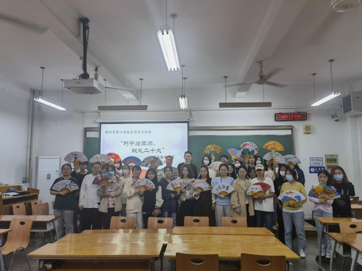 为深入学习贯彻党的二十大精神,丰富学生精神文化生活,11月10日下午,纺织学院在03-213教室开展以“巧手绘团扇,献礼二十大”为主题的画扇绘制大赛。纺织学院党委副书记李亮、辅导员和参赛学生共同参与。