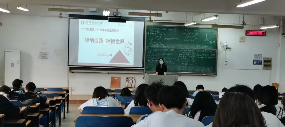 为进一步提高大学生心理素质,促进身心健康和谐发展,宣传普及心理健康认知,开展心理健康教育,5月8日下午18点,纺织学院在3栋T101开展“接纳自我 ,拥抱世界”为主题的心理健康讲座,此次讲座由纺织学院辅导员吴童玲老师主讲,20级全体学生参加。