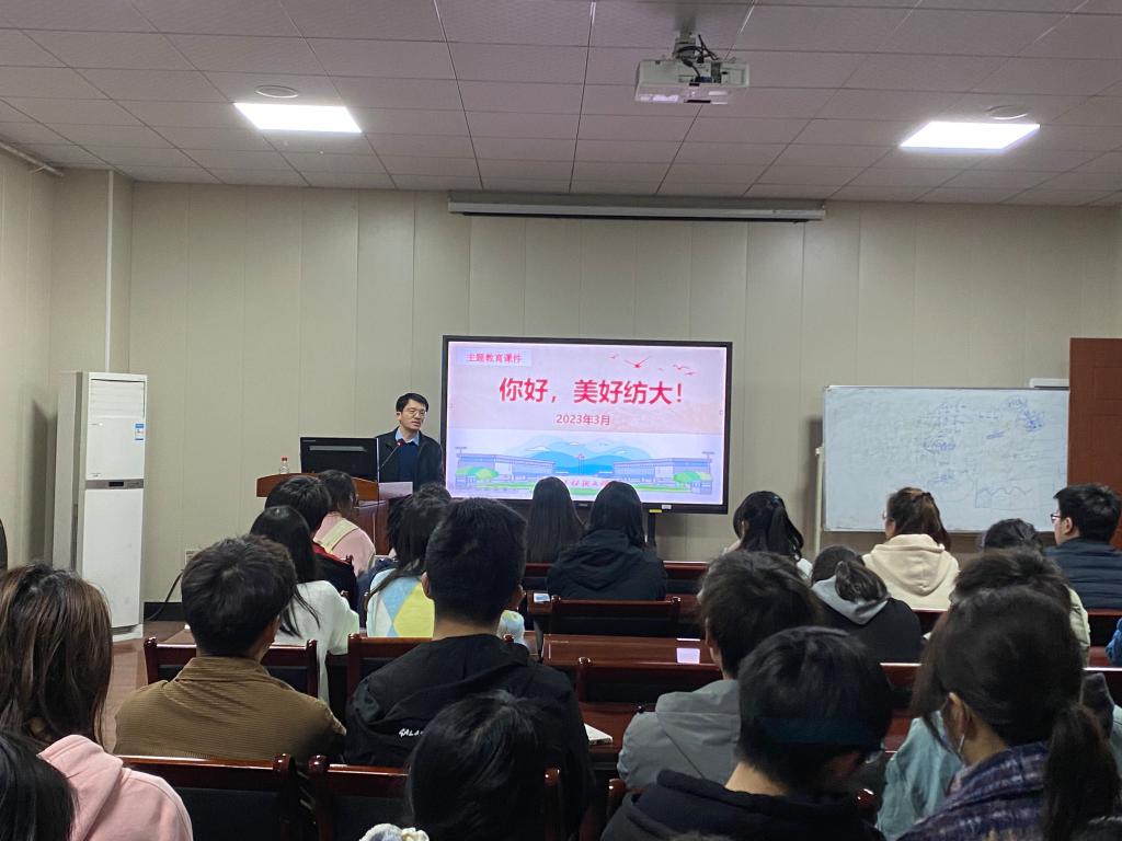 3月5日,纺织学院开展“你好,美好纺大!”主题班会,就争做时代奋进者、践行智慧学习等几个方面进行主题教育。本次主题班会由学院党委领导班子成员、各年级辅导员、班主任主持,全体学生共同参与。