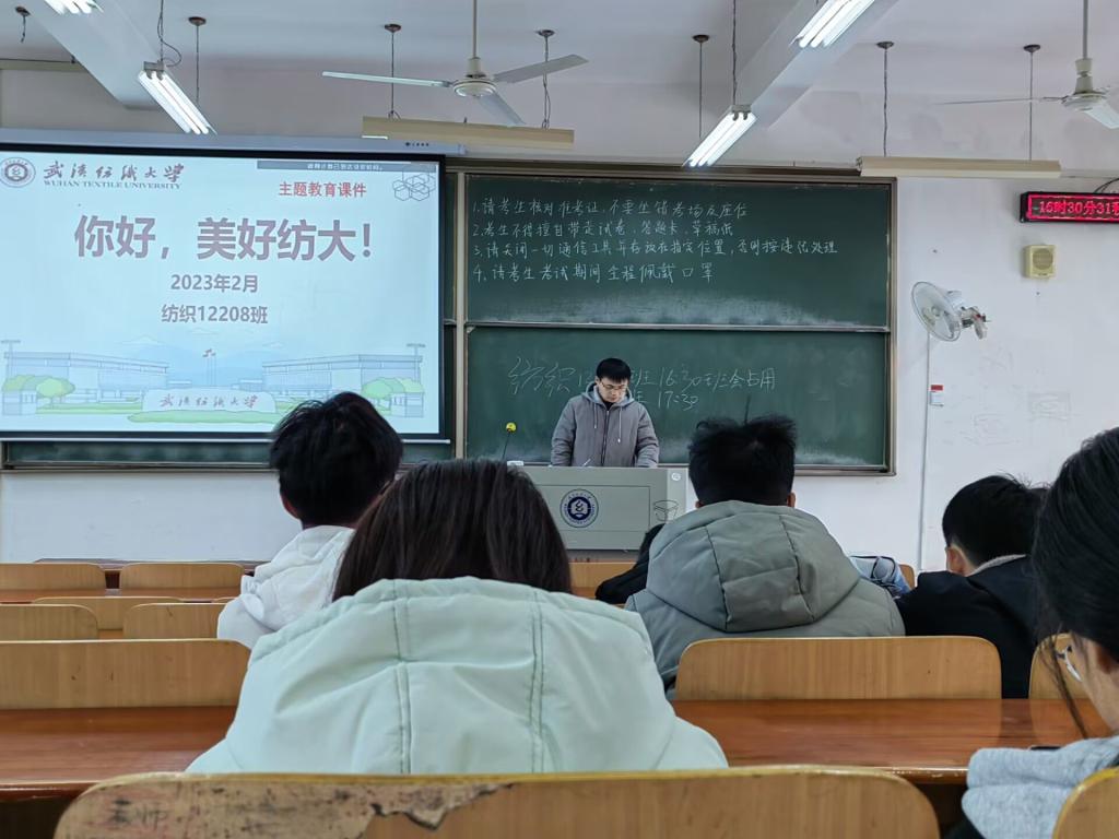 在会议上,主持人带领同学们认真开展开学第一课主题班会,主要向学生们分享了接下来的三月为学习雷锋月且今年是毛泽东等老一辈革命家为雷锋同志题词60周年,同学们要将崇高理想信念和道德品质追求转化为具体行动,体现在平凡的工作生活中,作出自己应有的贡献,把雷锋精神代代传承下去。同时也加强了爱国主义教育、生命健康教育、青春使命教育。其次,主持人与同学们共同学习防诈视频学习资料,以此告诫切实提升学生反诈意识,筑牢反诈防线。最后,主持人带领同学们一起学习我国宗教政策相关内容,教育同学们要自觉抵制非法宗教组织的渗透传播。