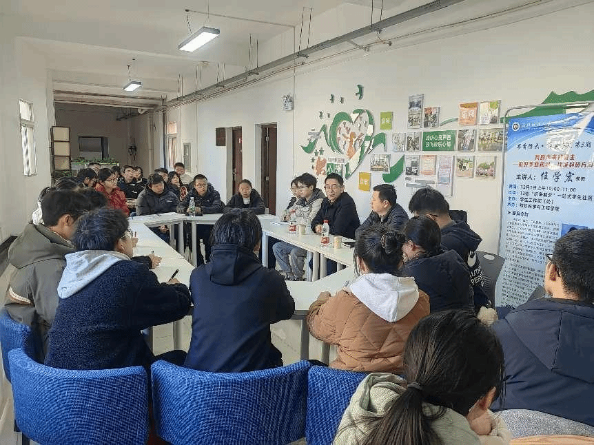 二级教授任学宏应邀开展座谈,23级辅导员向婷、余国铖以及46名学生代表参加活动。活动由纺织学院赵亮老师主持。