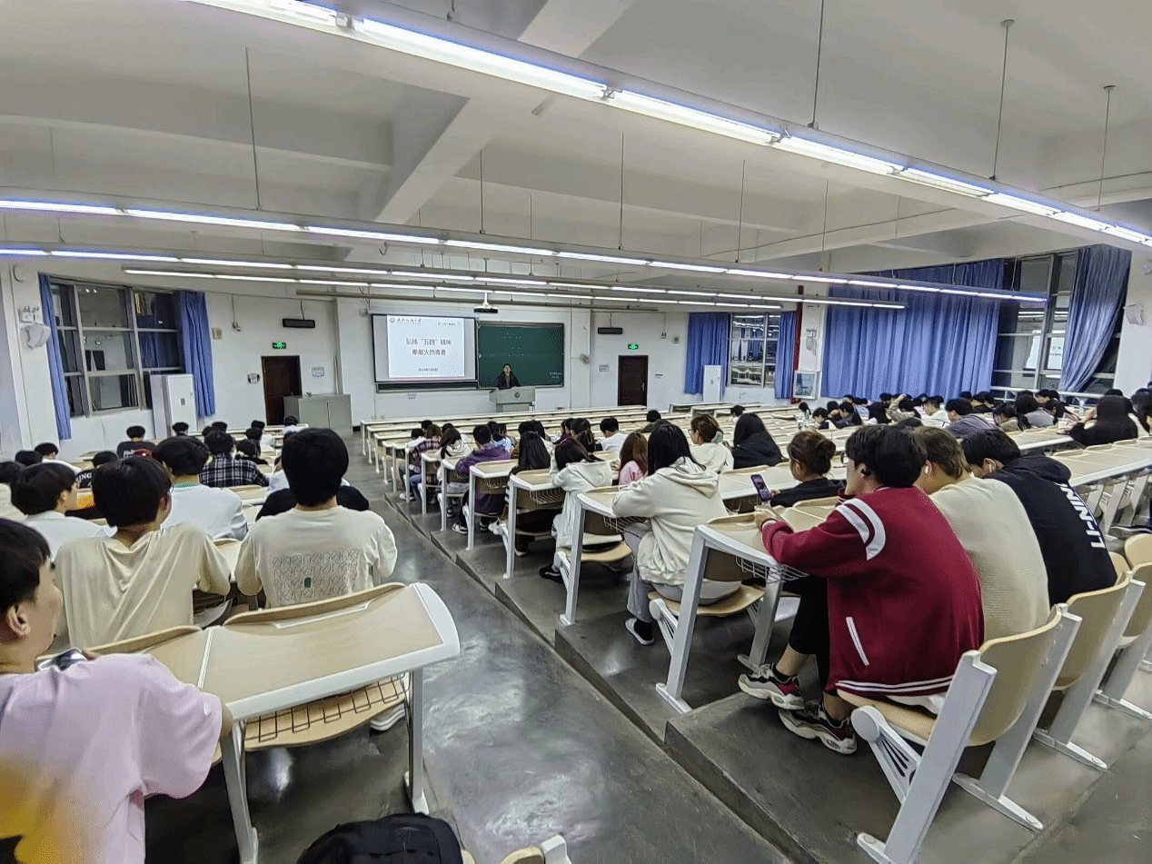 班会开始之际,余国铖老师以习近平总书记对广大青年的寄语为引,勉励同学们要在平时勤学苦练,保持创新思维,做创新思维的积极倡导者和率先践行者。同时,保持旺盛的好奇心,对想做爱做的事敢试敢为,敢于做先锋。随后,余国铖从形成背景、内涵、进步所在和价值蕴涵详细解读了五四精神。勉励同学们弘扬五四精神,将五四精神融入日常的工作学习中去,为实现中华民族伟大复兴的中国梦贡献自己的力量。