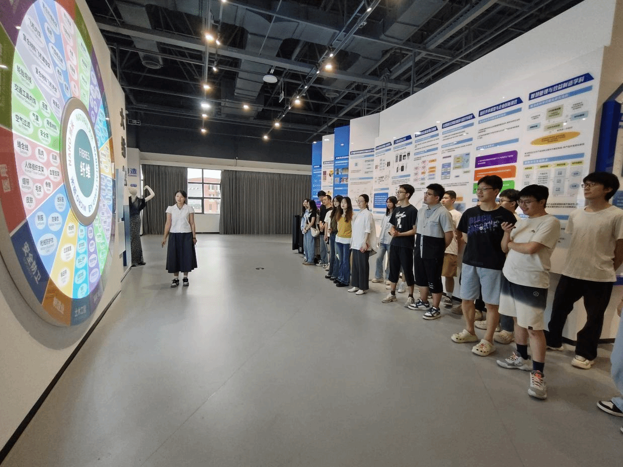 在讲解员的耐心讲解下,同学们已经沉浸在纺织科技的海洋里遨游,现场很多同学还参与了互动展示,亲身体验了纺织技术的魅力,从而增强了对纺织行业的更深入了解。