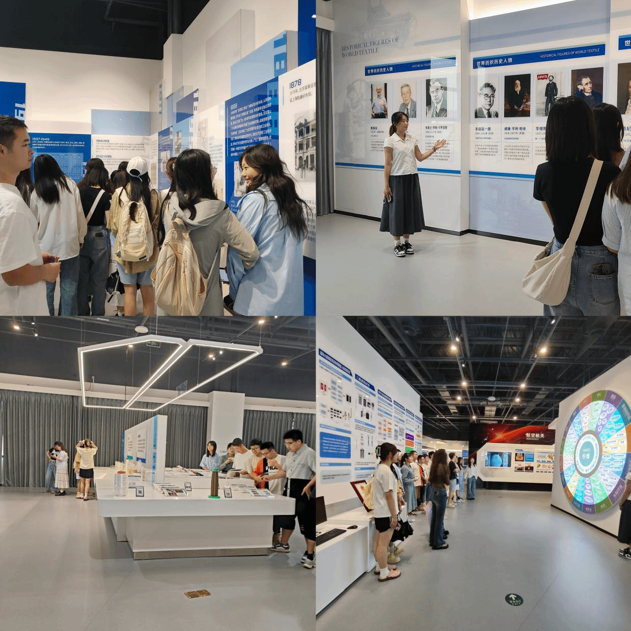 纺织人经天纬地、勇立潮头的理想,筚路蓝缕、攻坚克难的精神,各位劳模、专家、技术骨干精益求精、无私奉献的事迹,都深深地印在每位同学的心中,更是见证了纺织人“路漫漫其修远兮,吾将上下而求索”的报国情怀。大家详细观看展览、认真听取讲解,不时驻足流连,感受大纺织、超纺织、现代纺织的科技魅力。