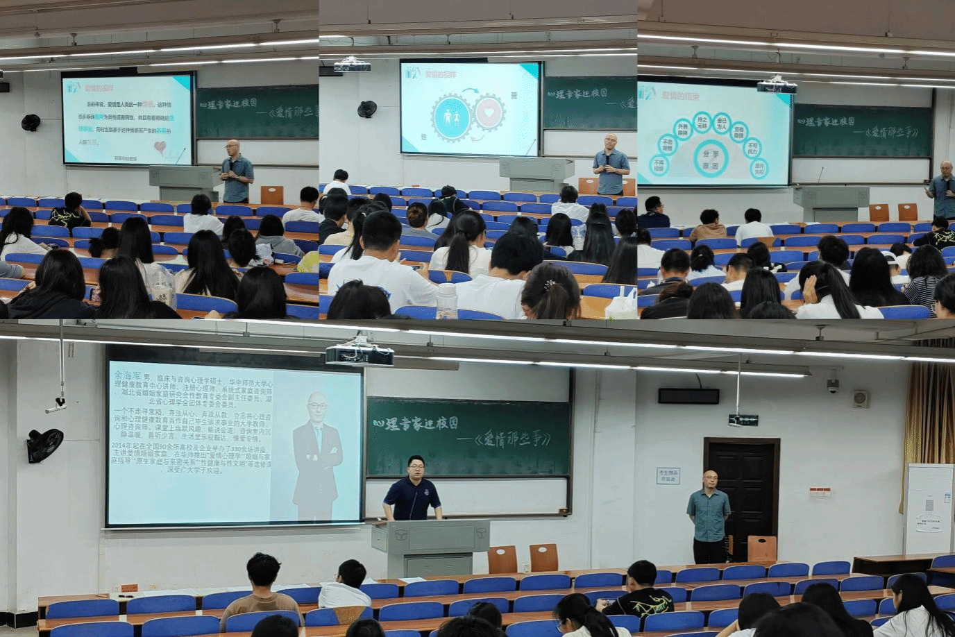 为培养学生对爱情的正确理解和健康观念,引导学生正确认识爱情,塑造正确的爱情观,同时帮助学生学会如何更好的爱自己、爱他人。2024年6月6日晚上7:00,纺织学院于三号教学楼T102教室开展了主题为“爱情那些事”心理健康教育讲座。本次讲座特别邀请华中师范大学心理健康中心余海军老师主讲,纺织学院二级心理工作站负责人余国铖博士、纺织学院全体心理委员及部分学生代表参加此次讲座。