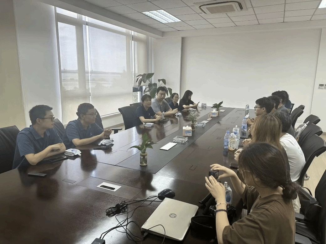 纺编青春实践队走进湖北嘉麟杰有限公司开展暑假实践活动。实践队成员与公司负责人在走访参观完工厂后成功举办了师生员工座谈会,拉近校企距离,共话人才培养。