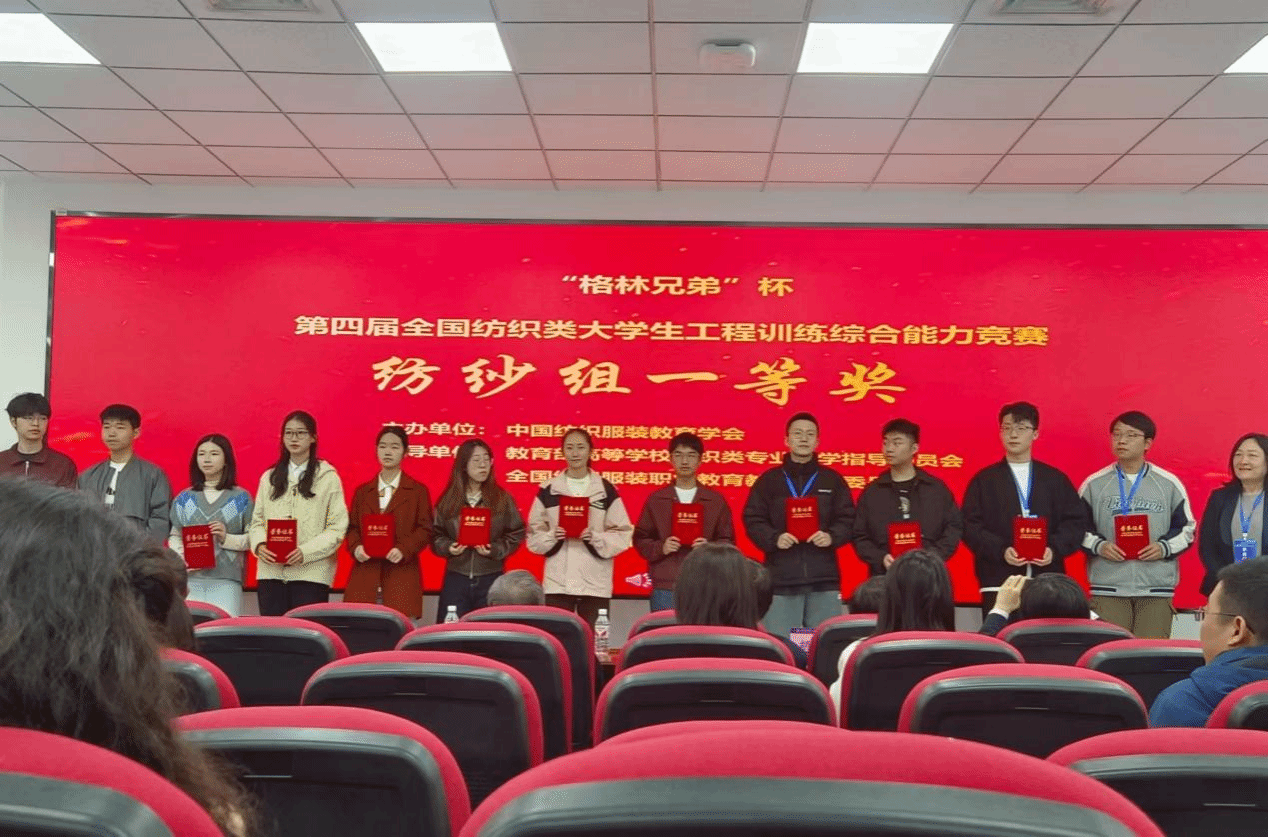 “格林兄弟杯”第四届全国纺织类大学生工程训练综合能力竞赛分本科赛道和高职赛道。本次比赛本科赛道吸引了来自全国55所本科院校的3293人次参赛。 纺织学院学生参加纺纱、机织、针织、非织、服工五个组别的比赛,总计获奖93项,其中一等奖10项,二等奖29项,三等奖25项,优秀奖29项,在2023年获奖62项的基础上取得获奖数量大幅提高。
