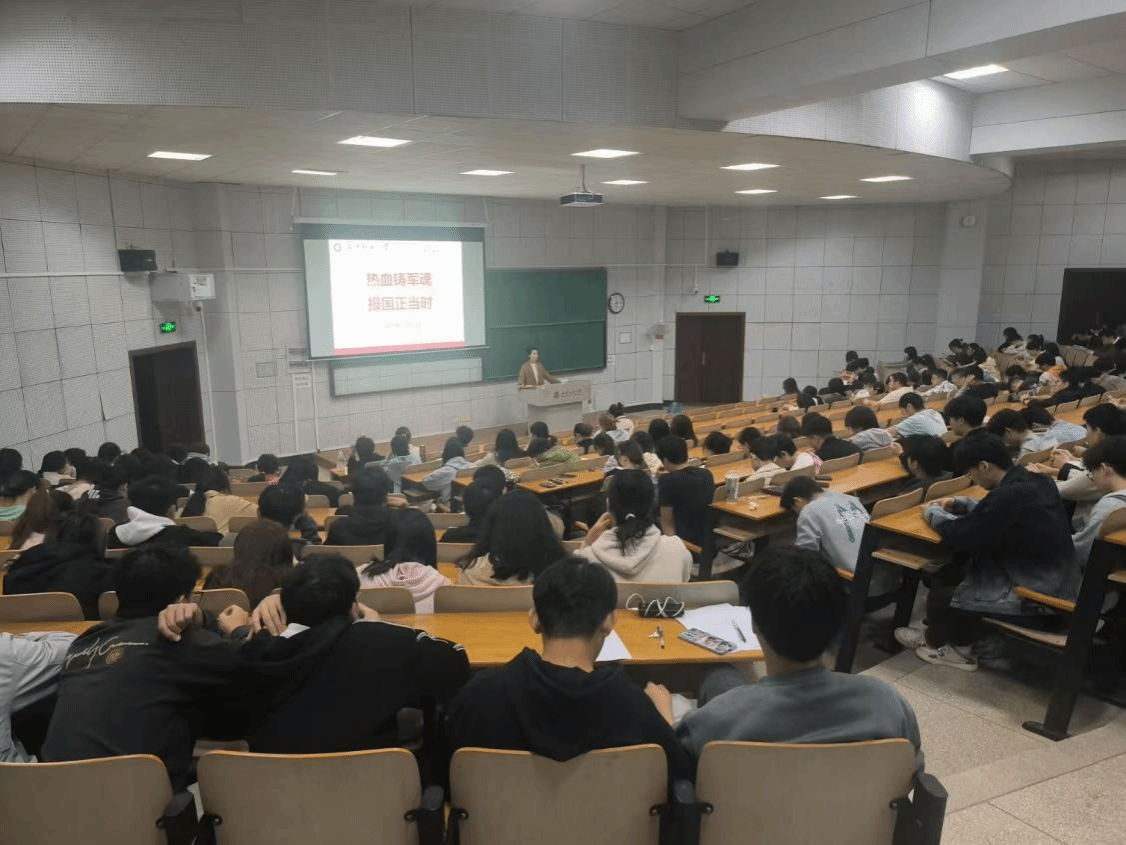 为积极响应国家号召,全面做好2025年春季大学生征兵入伍动员宣传工作,鼓励和引导大学生在携笔从戎中勇担强军重任,切实推动爱国主义和国防教育,纺织学院22级于2024年11月3日开展“热血铸军魂,报国正当时”年级大会。此次活动由22级辅导员王然主持,22级全体学生参与。
