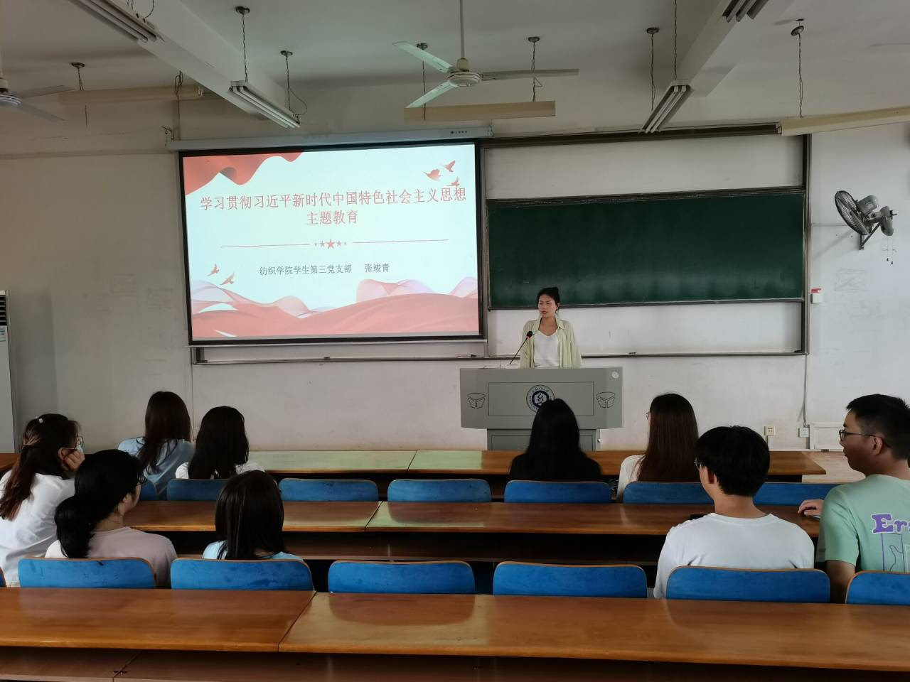 张竣青带领支部党员集中学习了习近平总书记在主题教育工作会议上的重要讲话,并讲授了主题为“锤炼个人本领,以青春韶华报效祖国”的主题教育专题党课。张竣青带领全体党员认识党章,思学习之源;学习总纲,知逻辑根本,从党的建设与自身相结合,讲述党员的权利与义务等等,并将纺织与党相结合,讲述了一堂精彩党课。张竣青指出,我们这一代共产党人使命光荣、责任重大,我们要以这次主题教育为契机,加强党的创新理论武装,不断提高全党马克思主义水平,不断提高党的执政能力和领导水平,为奋进新征程凝心聚力,踔厉奋发、勇毅前行,为全面建设社会主义现代化国家、全面推进中华民族伟大复兴而团结奋斗。新时代党员需要增强“四个意识”、坚定“四个自信”、做到“两个维护”,始终在思想上政治上行动上同党中央保持高度一致,做到心往一处想、劲往一处使。