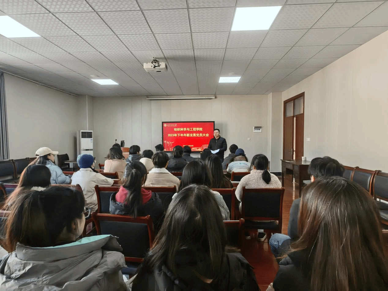 纺织学院在8H502召开2023年下半年新发展党员大会。会议由赵亮老师主持,纺织学院全体2023年下半年新发展党员参加了会议。