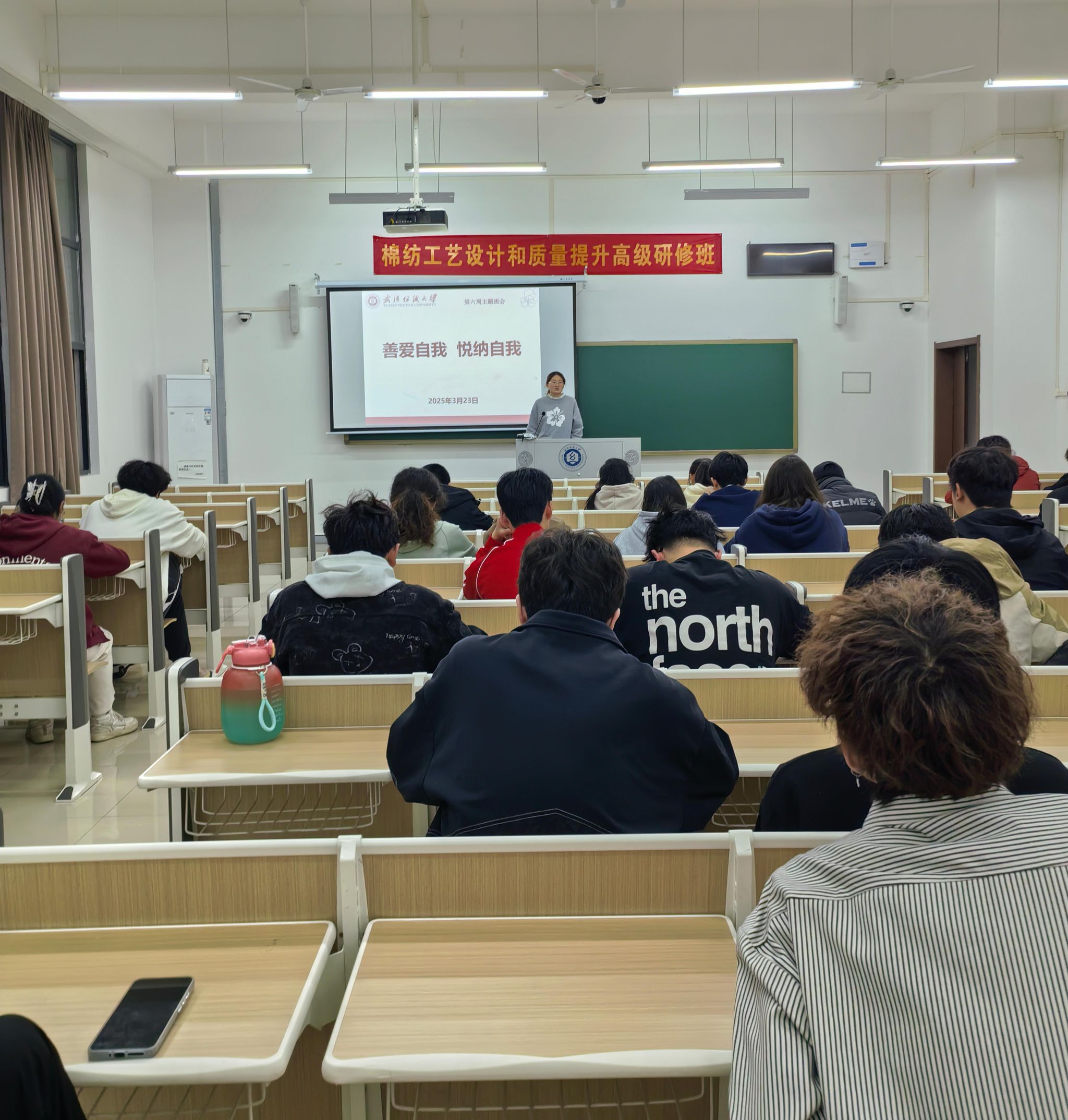 为响应“3·25善爱我”心理健康日号召,引导学生关注心理健康、增强安全防范意识,纺织学院于3月23日举办“善爱自我,悦纳自我”主题班会。本次班会由各年级辅导员、班主任主持,全体学生共同参与。