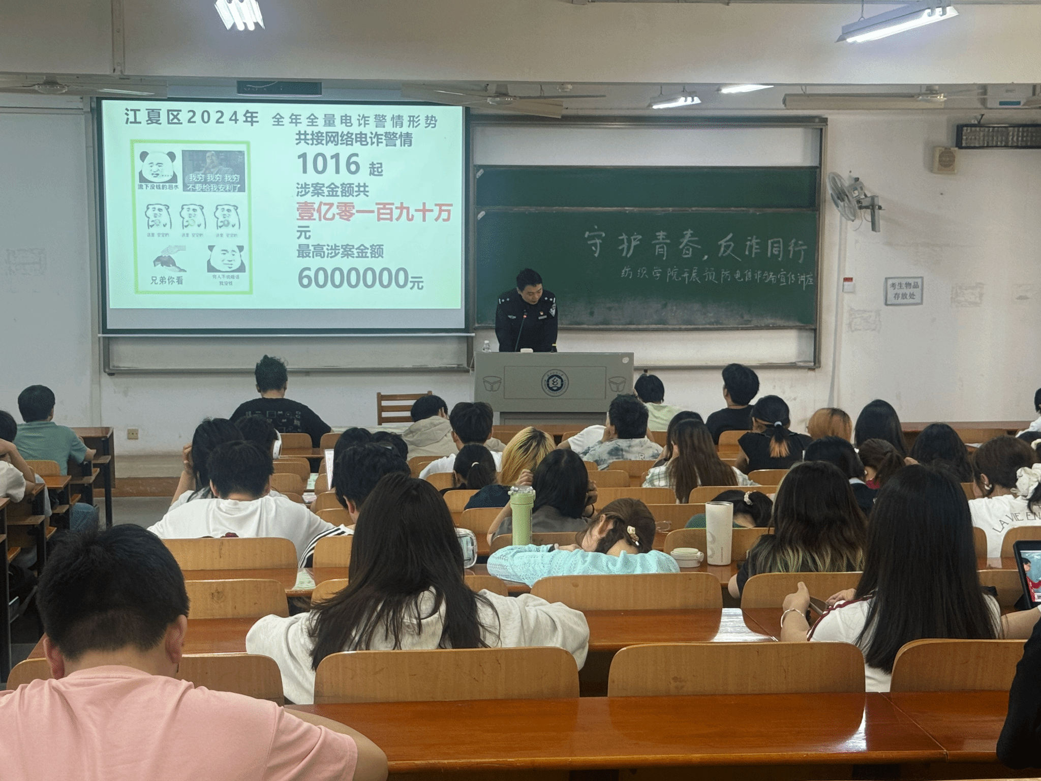 为进一步增强学生防范电信诈骗意识,筑牢校园安全防线,4月17日下午,纺织学院特邀庙山派出所伍文捷警官到校开展以“守护青春,反诈同行”为主题的防范电信诈骗宣传讲座。学院全体辅导员和学生代表共200余人参加讲座。