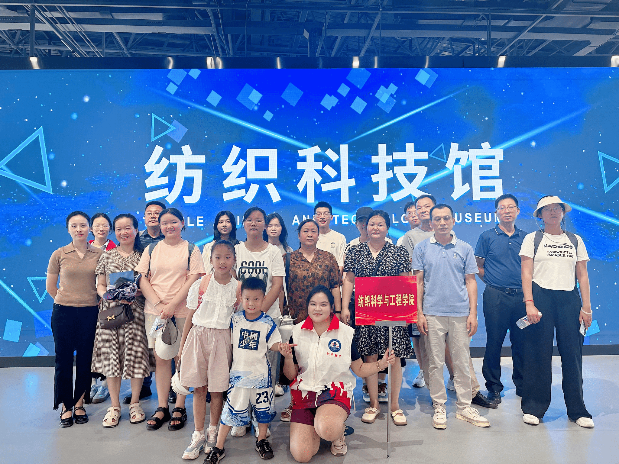 迎新现场,学院创意暖心的迎新之举层出不穷。在一站式学生社区特别设计了一项互动体验——纺织纤维轮展。以转盘的形式呈现“纺织纤维轮”,使新生和家长们通过转动转盘,探索纺织的多样性和未来纺织的无限可能性。同时,通过现场志愿者的讲解带领新生和家长们一同走进纺织的世界,引得大家频频驻足打卡。此外,学院通过“家长课堂”的形式,组织新生及家长们前往参观纺织科技馆,聆听纺织科技的进步历程,感受纺大魅力和历史厚重。纺织类12404班的高小源说道:“以前觉得纺织专业只是纺纱织布,今天来到了纺织科技馆,详细了解了纺织缘、传统纺织、现代纺织、大纺织、超纺织和未来纺织,让我不禁感叹纺织的神奇。今后我将扎实学习专业知识,为纺织科技的创新贡献自己的一份力。”