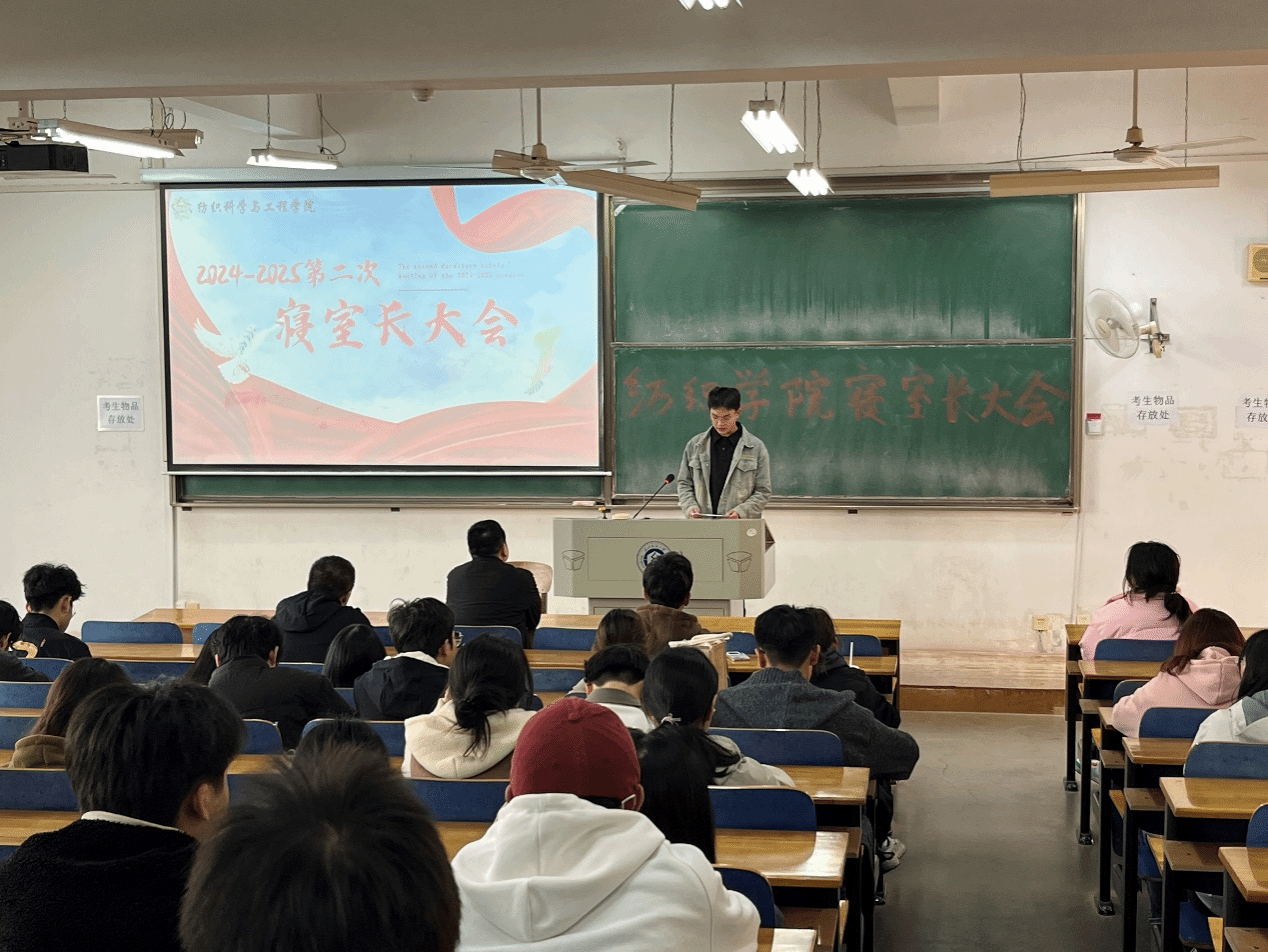 为了营造宿舍良好的学习生活氛围,加强安全文明寝室建设。纺织学院于11月21日下午4点在3教215举行2024-2025学年寝室长大会。纺织学院学生工作负责人赵亮,辅导员向婷、余国铖,各年级寝室长以及宿管中心工作人员参加会议。