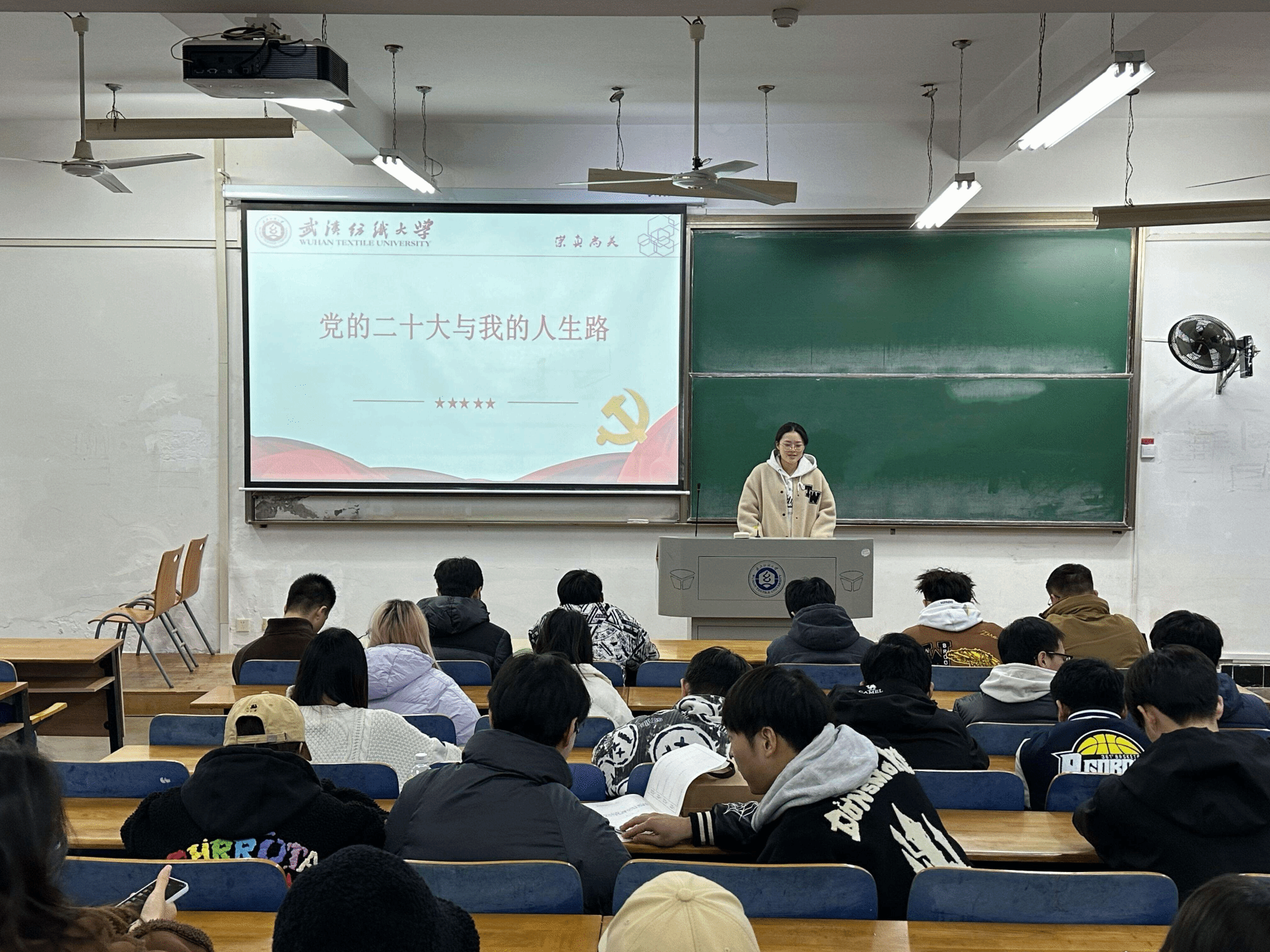11月11日,纺织学院举办“党的二十大和我的人生路” 宣讲活动,教育引导全院学生认真学习贯彻党的二十大精神,立志做有理想、敢担当、能吃苦、肯奋斗的新时代好青年,用青春唱响“强国复兴有我”的时代强音。