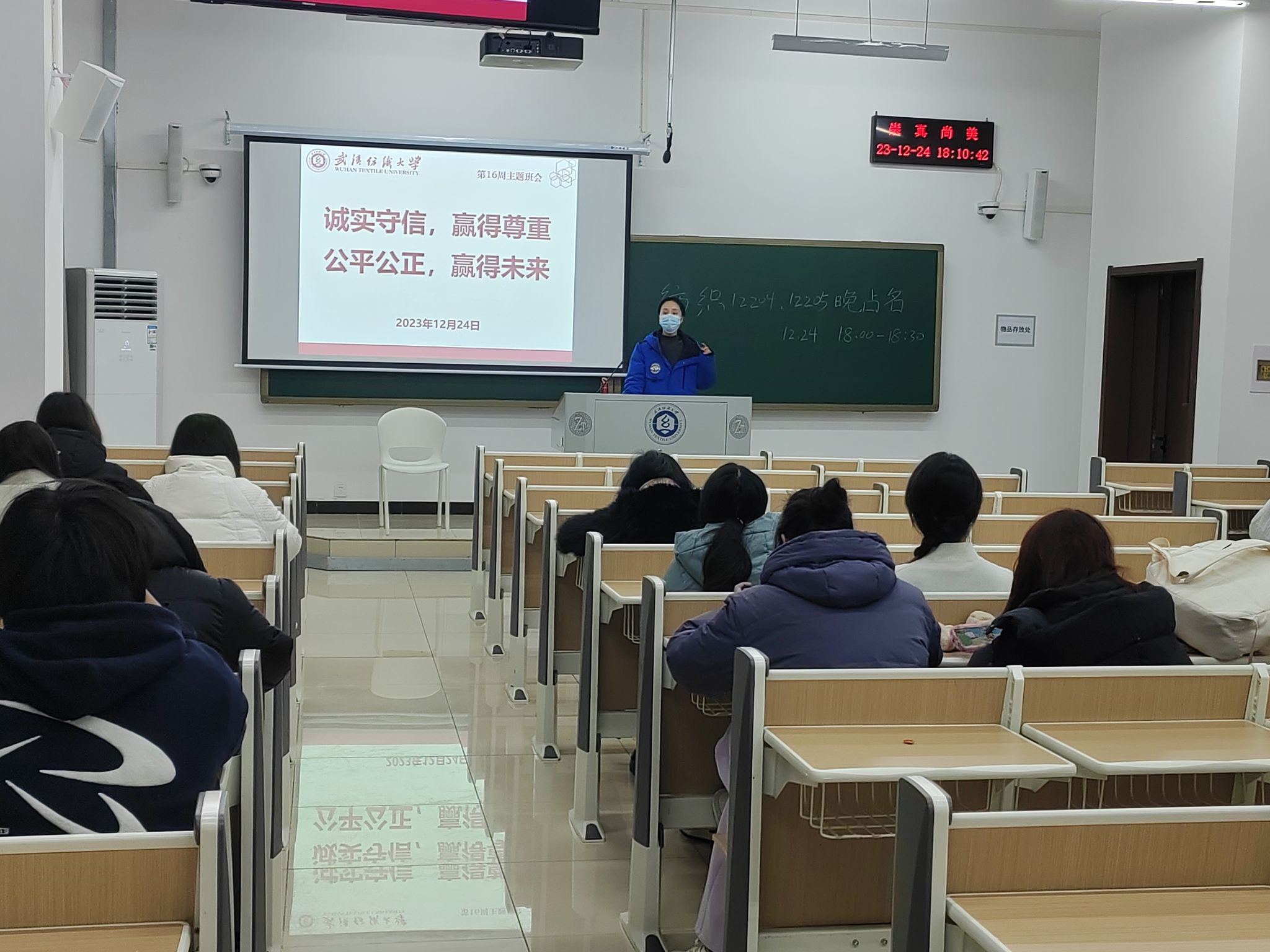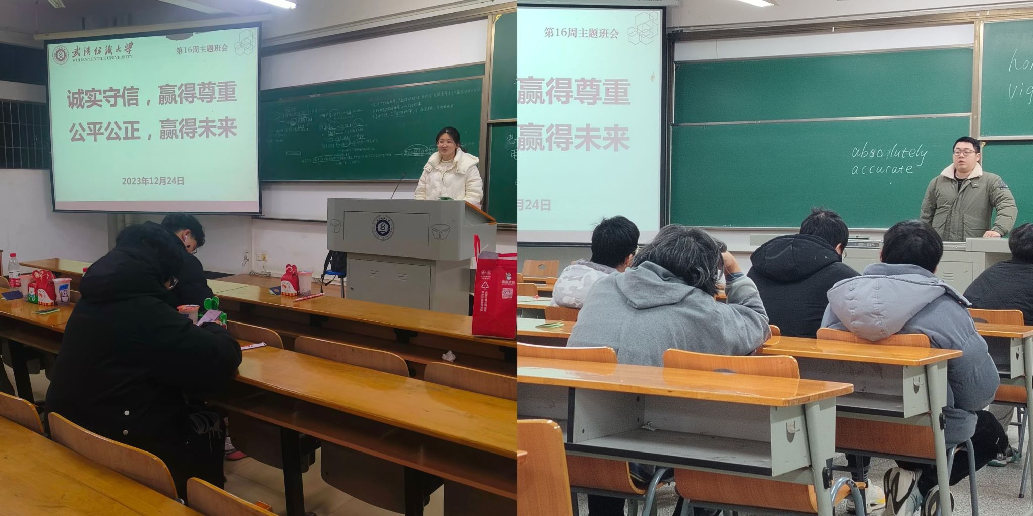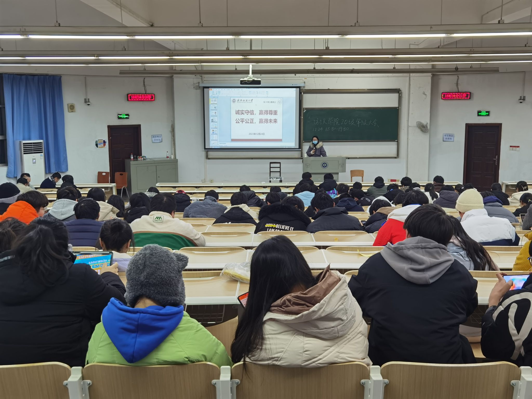 为落实立德树人根本任务,增强当代大学生的诚信意识和责任担当,端正同学考试态度,形成良好的诚信之风,纺织学院于12月24日开展“诚实守信,赢得尊重,公平公正,赢得未来”主题班会。该活动由各年级辅导员、班主任及全体学生共同参与。