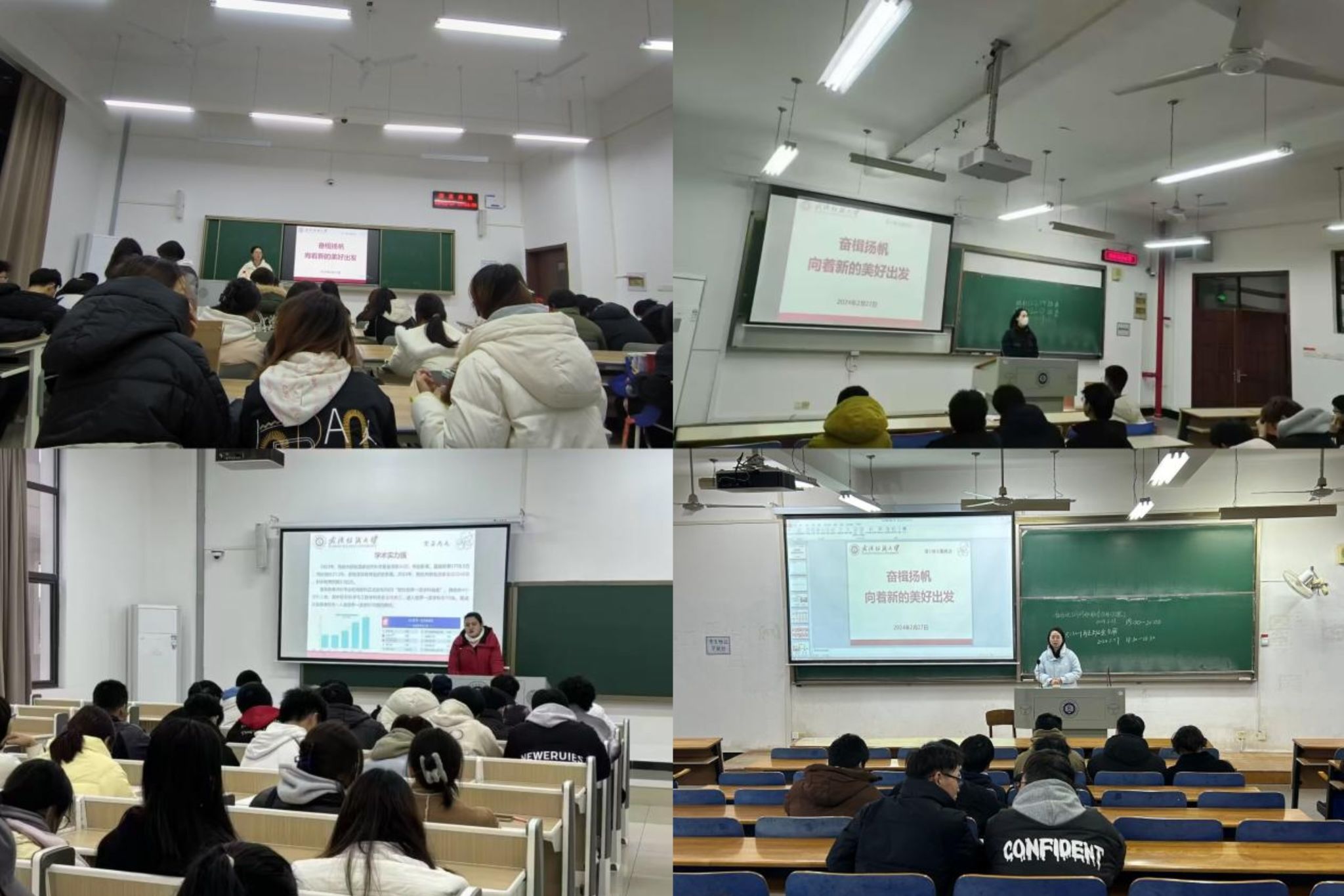 各年级辅导员、班主任在开学第一课中,带领大家学习了解校之要情、学院大事,并鼓励大家积极分享寒假社会实践见闻,畅谈新学期学业发展规划。同时,勉励同学们调适情绪心态、调整生活状态、鼓起奋斗姿态,夯实专业知识,培育综合素质,树立远大理想,以拔节向上的姿态投入到新学期的学习生活。