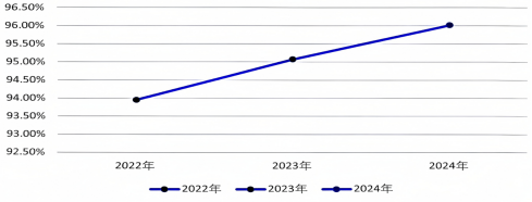 学院重视毕业生就业质量的提升,特别是核心指标签约率,近年来毕业生签约率保持平稳,2024本科生签约率为96.01%,就业质量稳步提高。