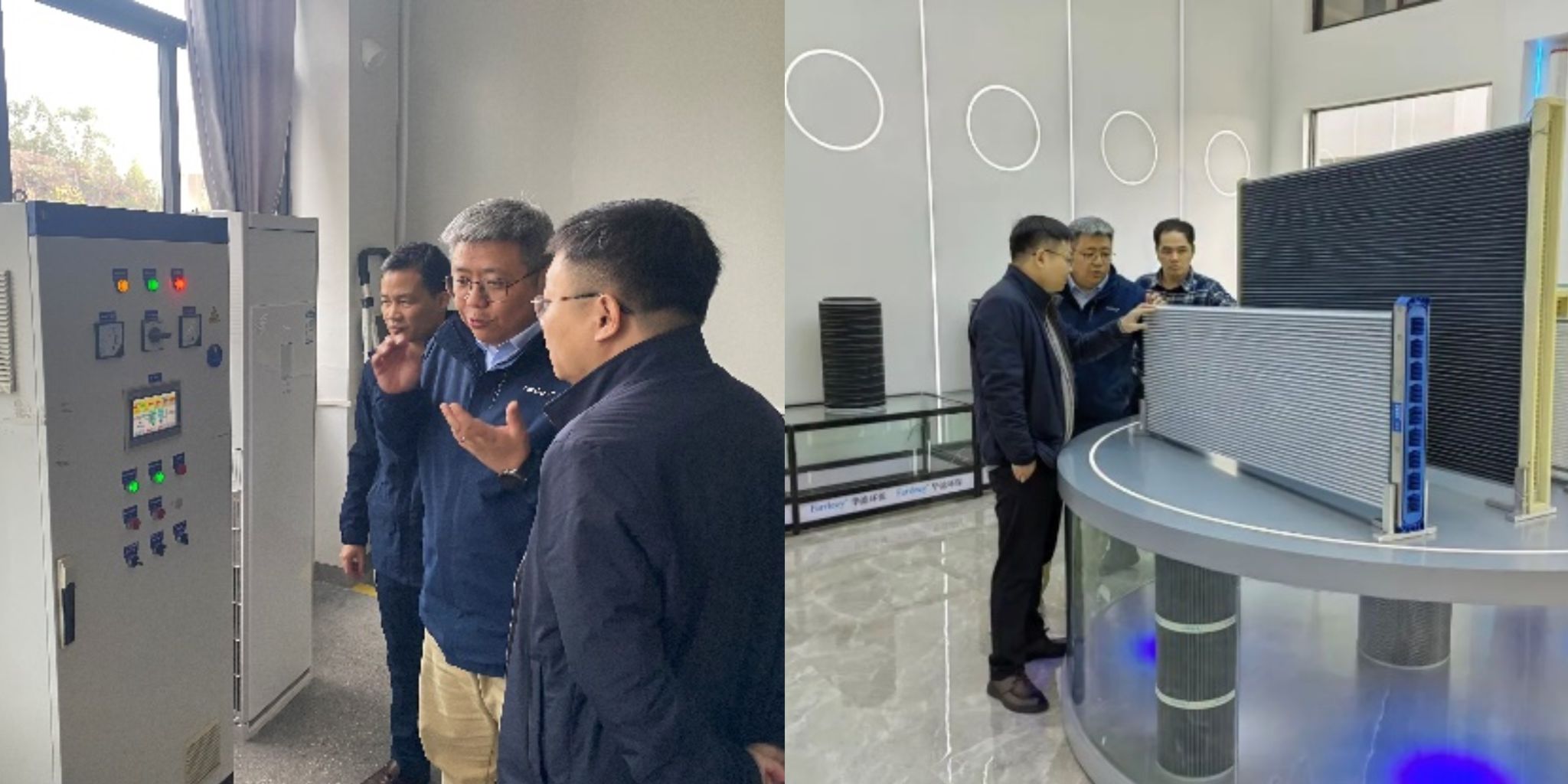 首先,蔡光明一行对广州华滤的办公环境、生产车间、研发中心及展厅等进行了参观。