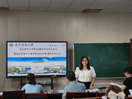 为提高我毕业设计(论文)质量,充分发挥毕业设计(论文)环节对大学生创新精神和实践能力培养,展现优秀毕业学子学业成果。530日下午,纺织学院于8H502开展肉视频 第248期本科生学术论坛暨纺织学院2024“优秀毕业论文(设计)”本科生学术论坛。张尚勇教授、邹汉涛教授、欧阳屹伟老师、徐杰副教授、颜超副教授、张明副教授担任论坛评委,副院长柯薇主持论坛。各年级各专业学生代表参加活动。
