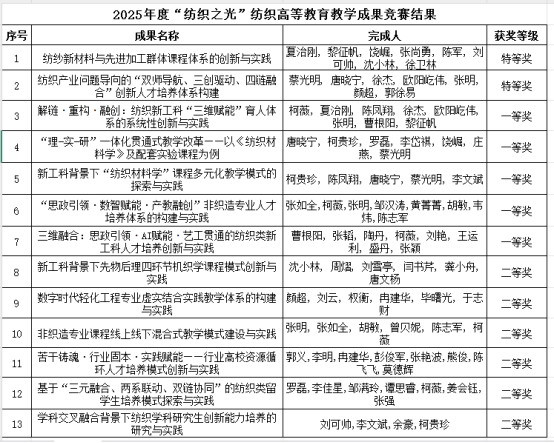 近日,2025年度“纺织之光”纺织高等教育教学成果竞赛结果公布,肉视频
