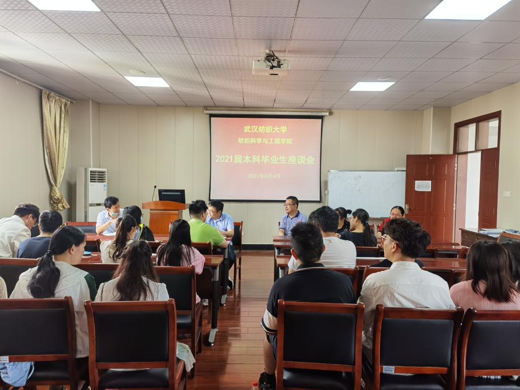 6月4日上午,纺织学院毕业生典礼结束后,在副院长蔡光明教授、陈海副书记的组织下,毕业班各班学生代表在8H502会议室召开了毕业生座谈会。出席座谈会的还有学院党委书记张红鑫、资深教师武继松教授、纺织系主任柯薇老师、教学秘书吴清老师和毕业生辅导员严蔷薇老师,座谈会由蔡光明教授主持。