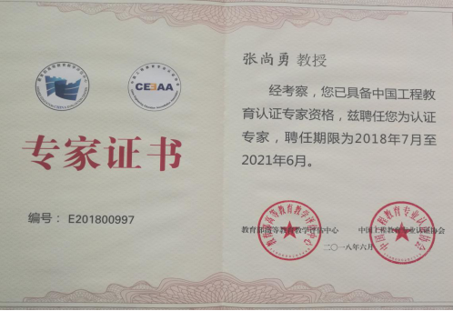 张尚勇教授获聘中国工程教育认证专家